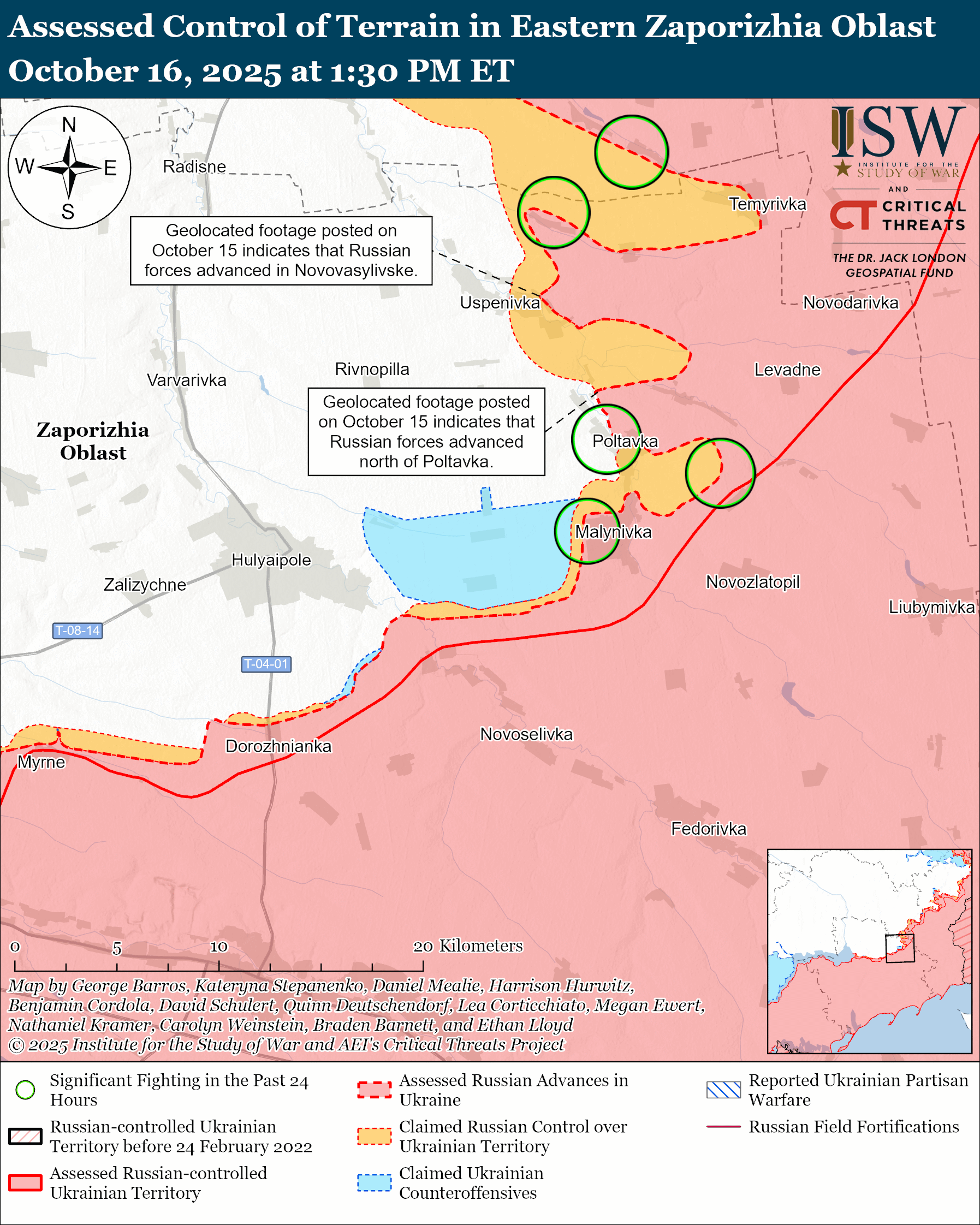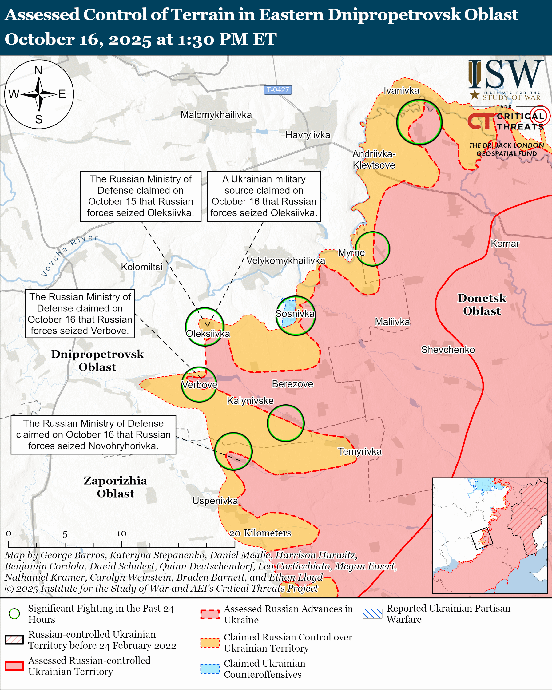 En dirección al Dniéper, apenas se han producido cambios, aunque sí nuevos ataques rusos hacia el río Yanchui, que la artillería y las bombas guiadas ucranianas han intentado frenar a la altura de Novoivanivka. Por otra parte, se habla de avances rusos tanto en Novovasylivske como al norte de Poltavka, si bien se trata de movimientos que ya habíamos recogido en informes previos.