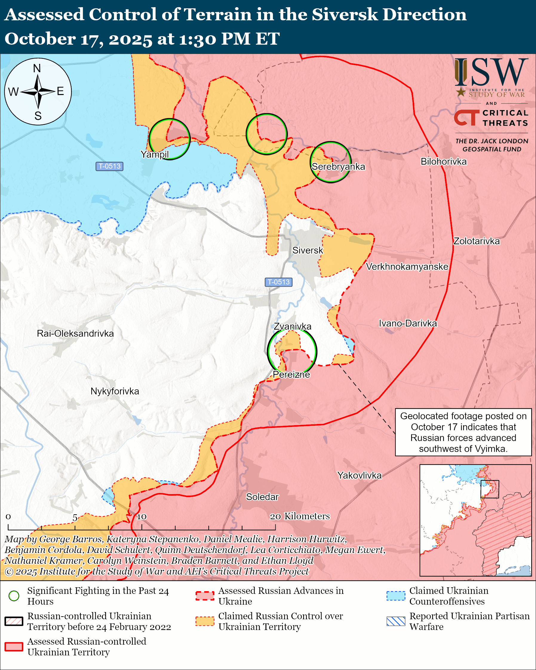 En el vecino sector de Siversk, se han registrado progresos rusos en los alrededores de Vyimka, al sur del sector.