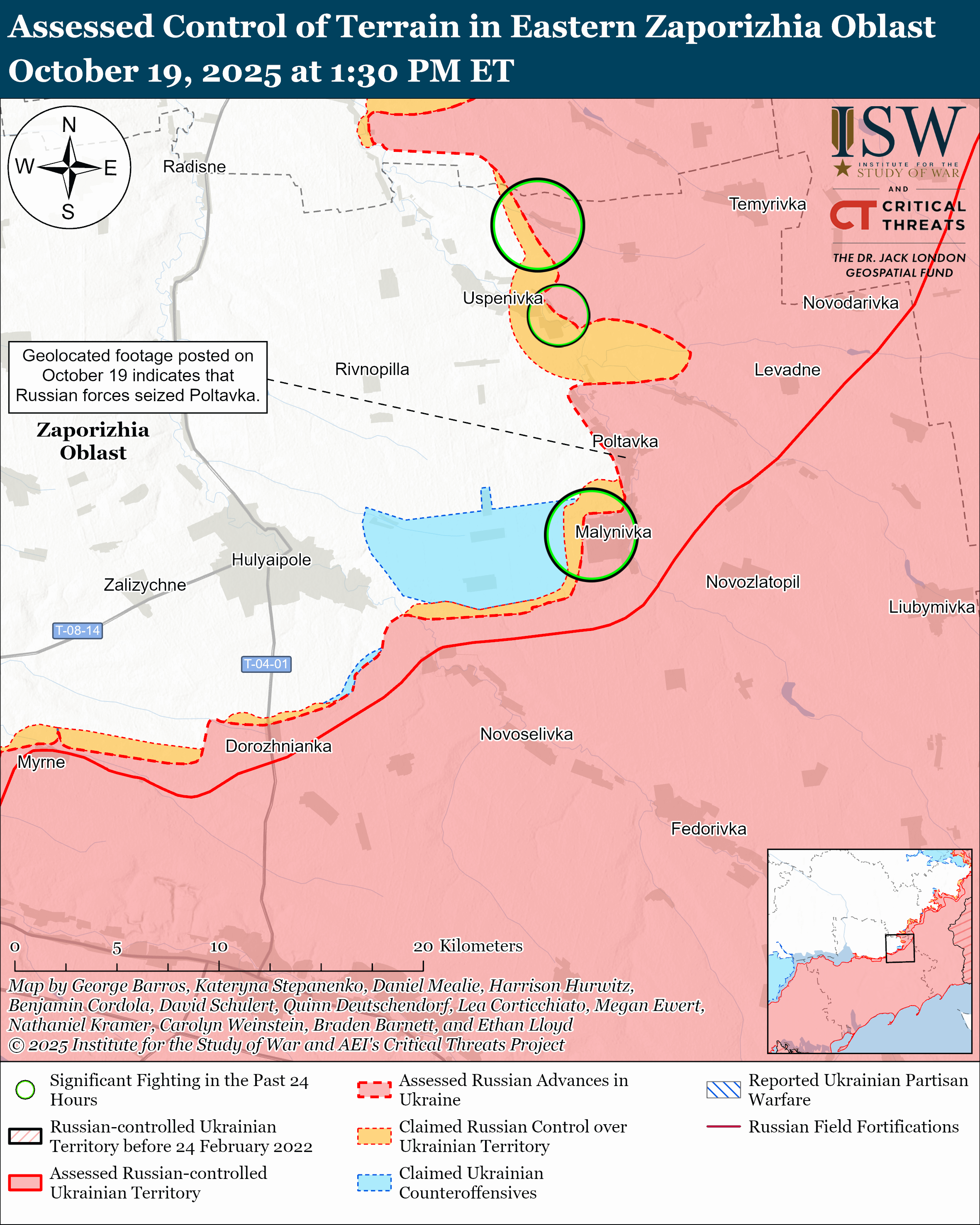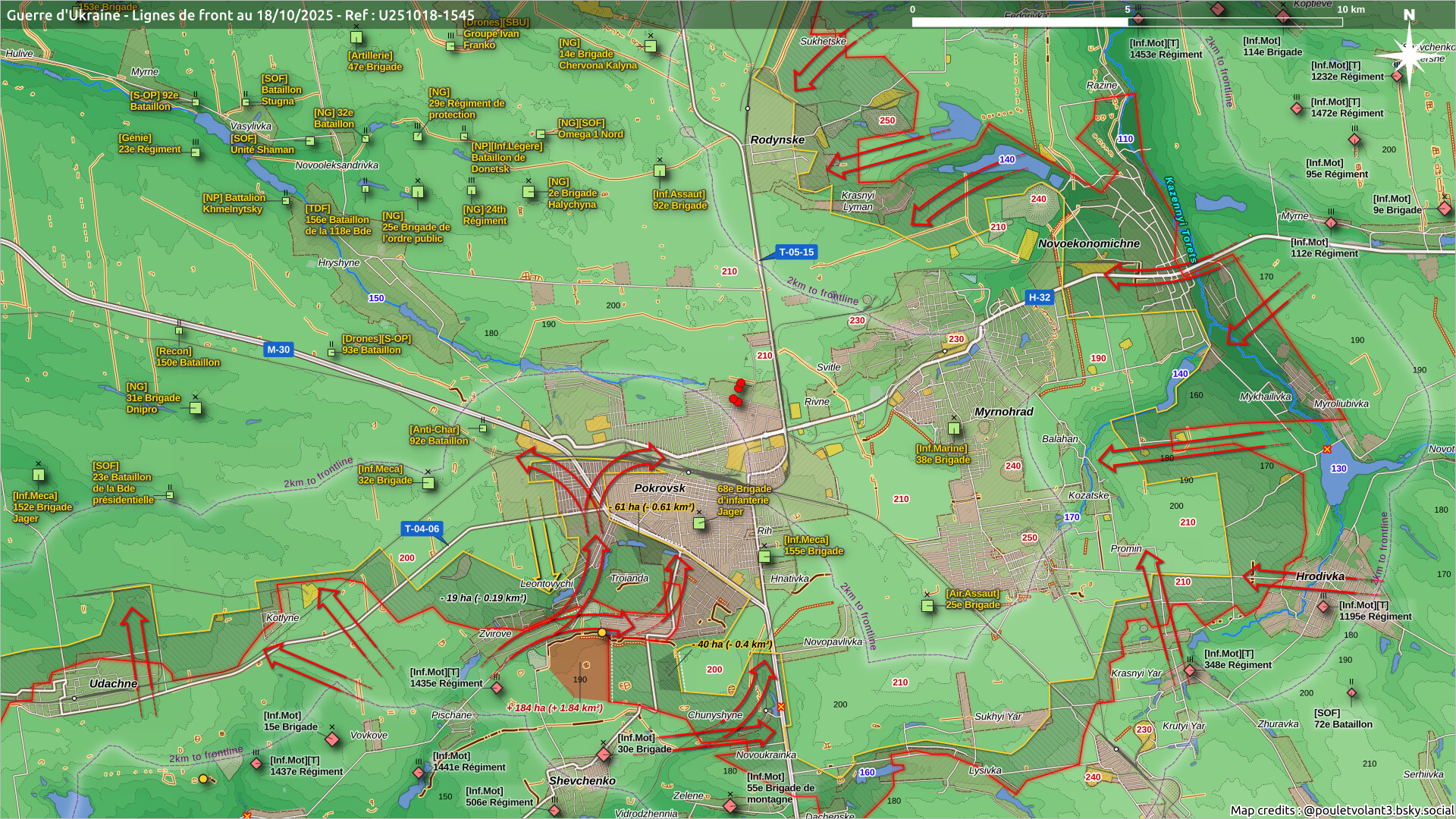 En Myrhorad/Pokrovsk, apenas hay noticias nuevas, más allá de que continúan los ataques rusos tanto al noreste y sureste de la primera de estas ciudades (mientras los rusos siguen afianzando sus posiciones en el saliente de Dobropillia), como desde el sur de la segunda, cada vez más cercadas ambas. Además, se han registrado bombardeos con FABs en zonas al norte de Pokrovsk, que posiblemente adelanten los próximos pasos rusos y que, por de pronto, sirven para eliminar cualquier punto de resistencia ucraniano a través del overkill, causando de paso una notable confusión.