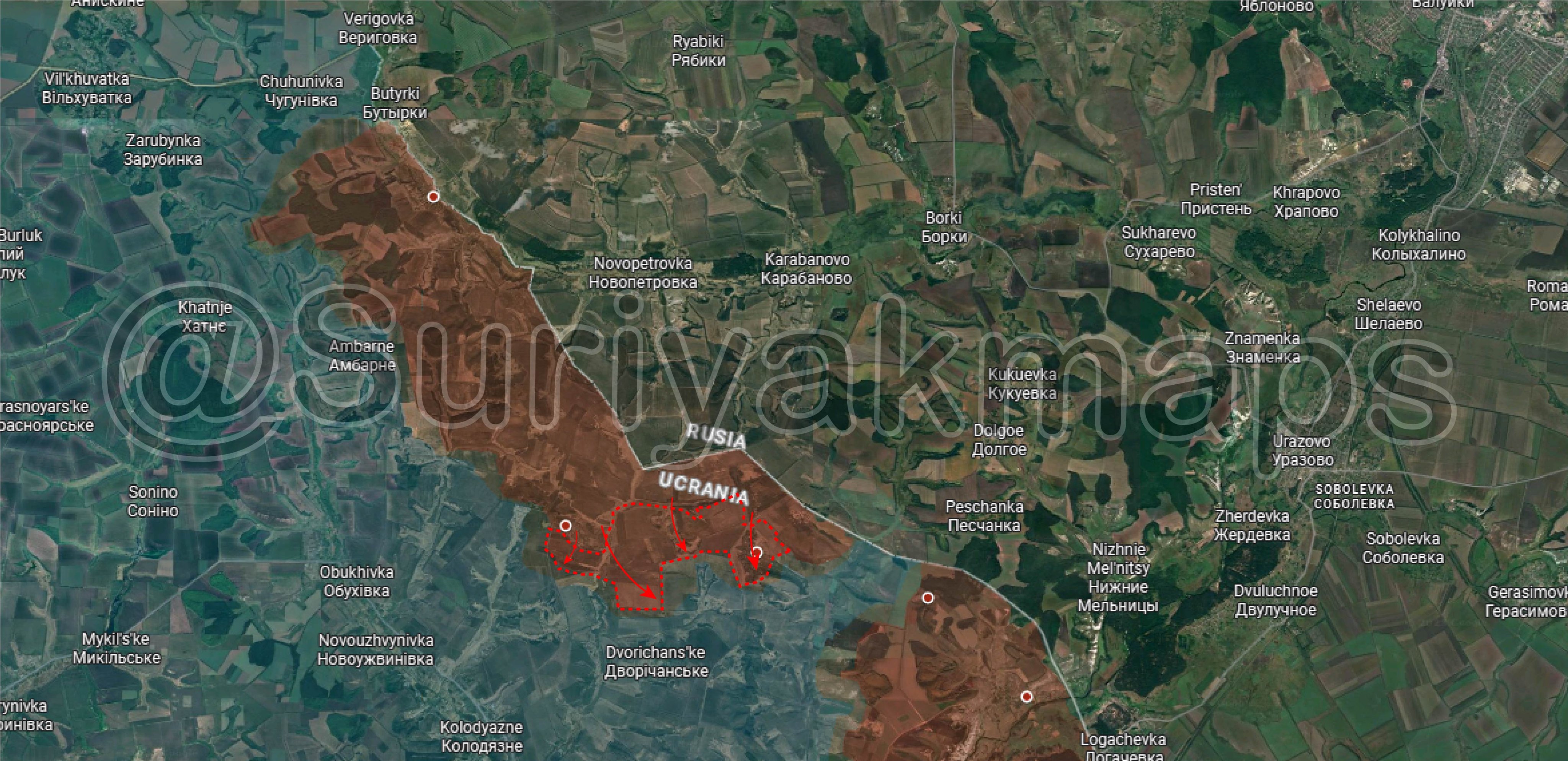 Al norte del sector del Vovcha, efectivos rusos han seguido presionando hacia Ivanivka, al norte de Zelenyi Hai, en el recodo. Además, en el río Yanchur, la bandera del Regimiento Bolshói ha sido avistada en la calle principal de Yehorivka, confirmando la presencia rusa, a la espera de conocer el grado de control.