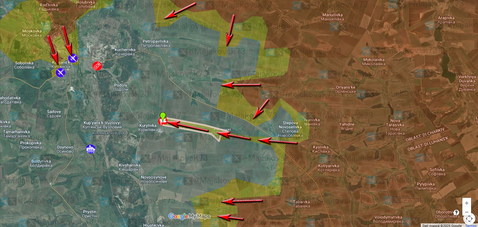 En el sector del Oskil, concretamente en Kupiansk, además de nuevos contraataques ucranianos al norte de la urbe, tenemos que las tropas rusas, amén de seguir lanzando asaltos en zonas céntricas, han incursionado siguiendo el curso de la H-26 en dirección suroeste. Por otra parte, desde Stepova Novoselivka, demostrando que la presencia ucraniana es mínima o nula en la margen oriental del Oskil, se ha producido un movimiento ruso que les ha permitido llegar a las puertas de la aldea de Kurylivka.