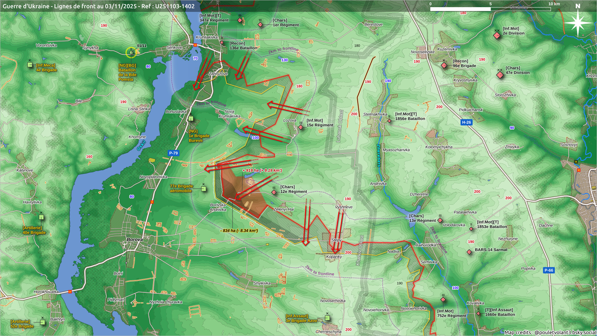 En el sector del Vovcha, para finalizar, lo más reciente son los pequeños progresos rusos desde Novoukrainka hacia Dachne y Fliya, en la orilla norte de este río, que tienen muchas dificultades para cruzar dada la orografía, pero también la construcción de posiciones defensivas sólidas por parte ucraniana; de ahí que hayan optado por esta opción.