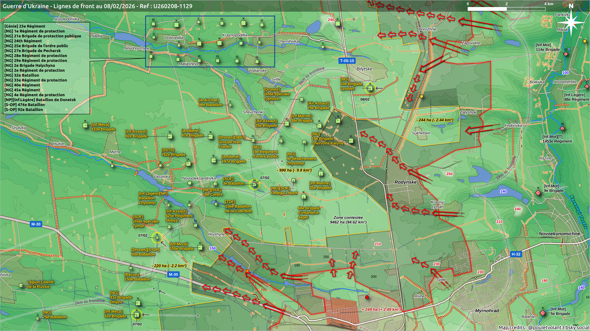 Al sur del frente, ha continuado la contraofensiva ucraniana, que implicaría el movimiento de unidades desde distintos puntos del frente, presionando al este del río Haichur, en dirección a la carretera que une Pokrovske, al norte y Gualiaipolé, al sur. Los rusos, por su parte, han seguido lanzando ataques en las direcciones habituales, con lo que la situación real es sumamente confusa. Se habla, eso sí, de la posible retoma ucraniana de Staroukrainka, con lo que serían ya tres las poblaciones reconquistadas en las últimas horas.